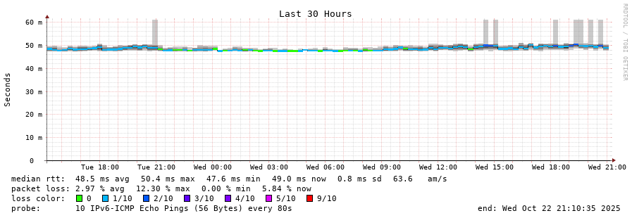 traceroute to 2c0f:5400:2:15::1 (2c0f:5400:2:15::1), 30 hops max, 80 byte packets - Generated at 2025-10-22 07:15:01