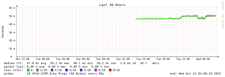 traceroute to 2a03:bb40:1::b (2a03:bb40:1::b), 30 hops max, 80 byte packets - Generated at 2025-10-21 22:45:01