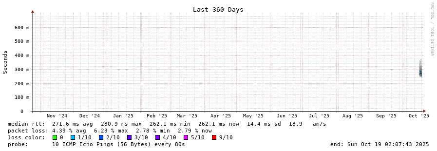 traceroute to 190.104.210.9 (190.104.210.9), 30 hops max, 60 byte packets - Generated at 2025-10-18 20:00:01