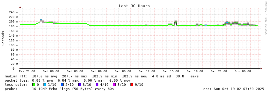 7 > lumen-gw-xcr2.nyk.cw.net (195.2.26.30) [AS1273] 77.096ms 76.630ms 76.619ms