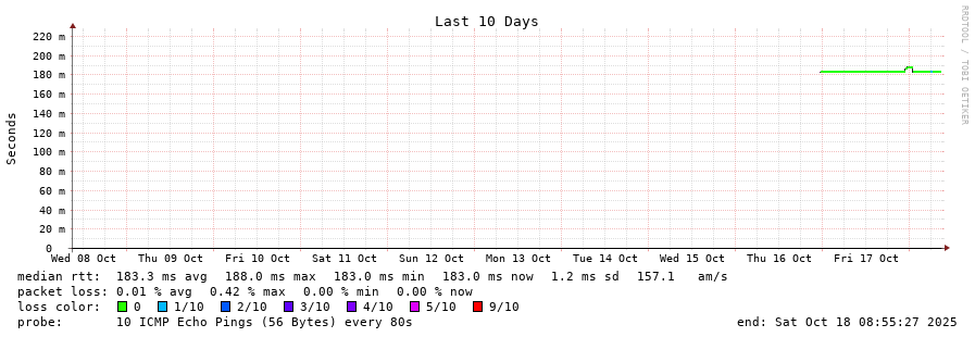 8 > 5.178.43.139 (5.178.43.139) [AS6762] 197.827ms 197.845ms 197.743ms